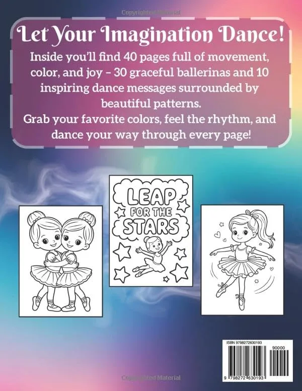 Celebrate the joy of movement with 40 charming pages of ballerinas, elegant stage scenes, and uplifting sayings. Easy, screen-free fun for young dance lovers—perfect for birthdays, recital gifts, and quiet-time relaxation. A lovely keepsake that invites little artists to color, dream, and twirl with grace.