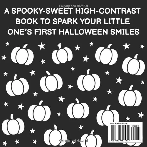 Designed for newborn focus, this sweet keepsake pairs bold black-and-white art with friendly Halloween icons—pumpkins, ghosts, bats, and stars. Perfect for tummy time and lap snuggles, it’s a charming first-holiday gift that engages babies 0–12 months, page after page.