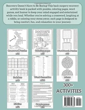Recovery after back surgery can feel long, tiring, and dull—but it doesn’t have to be! This activity book is specially crafted to brighten your healing journey, lift your mood, and keep boredom at bay. 🌟