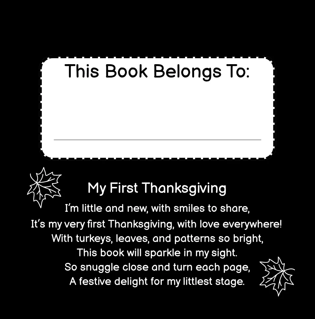 Designed for newborn focus, this festive keepsake pairs bold black-and-white shapes with sweet seasonal icons—turkeys, pumpkins, and autumn leaves. Perfect for tummy time and lap snuggles, it supports early visual engagement while turning your baby’s first Thanksgiving into cozy, screen-free bonding moments.